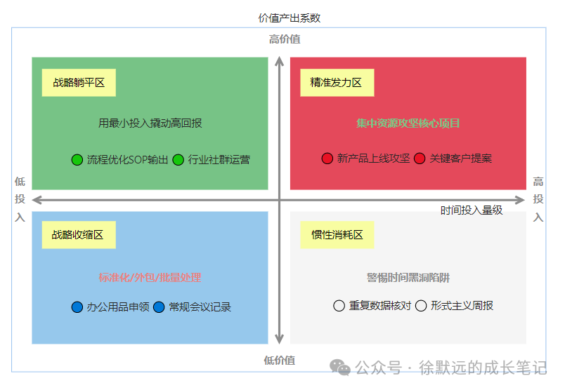 (建议搭配四象限图示,坐标轴说明:横轴=时间投入量级,纵轴=价值产出系数)